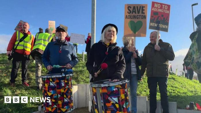 Plans to build a new town of 14,000-20,000 homes on greenfield land in Adlington, Cheshire, have sparked strong opposition from farmers and residents