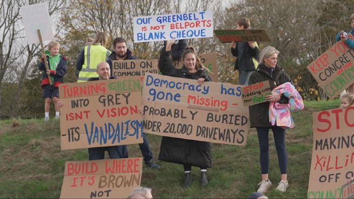 ITV NewsProtest staged in Cheshire against Government's 20,000-home new town plan