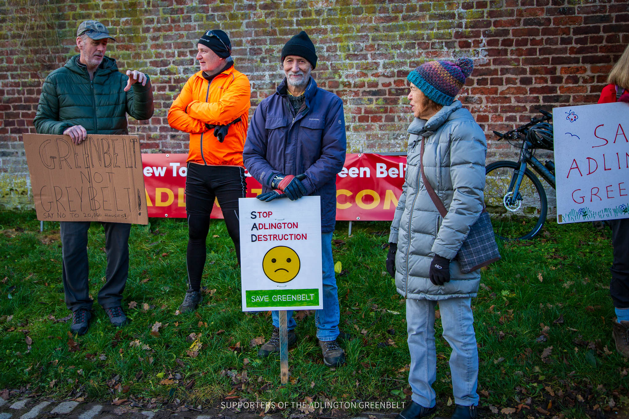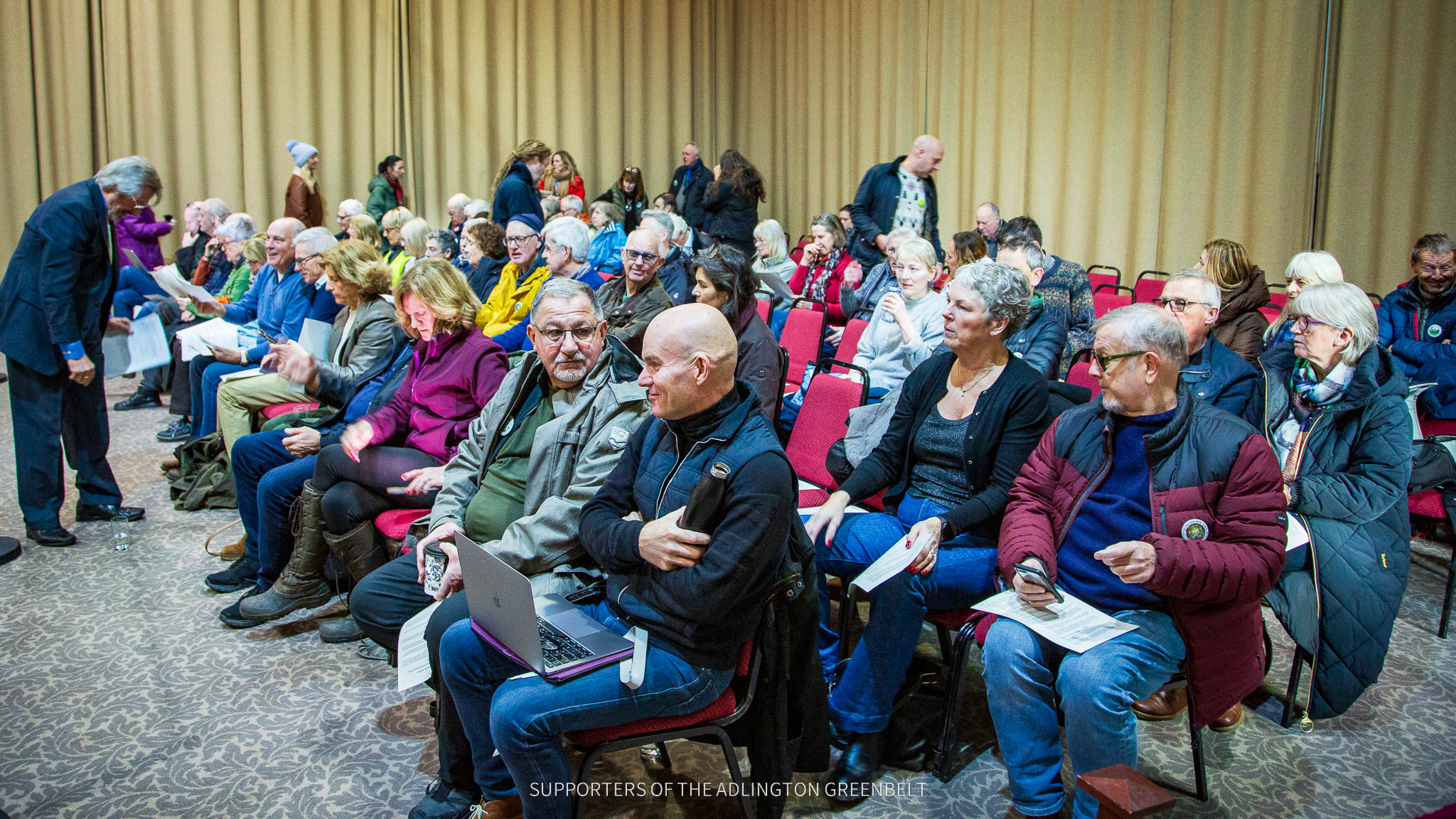 Residents from across the community gathered outside the venue, with strong representation from the Adlington Greenbelt Facebook group, the largest local opposition network.