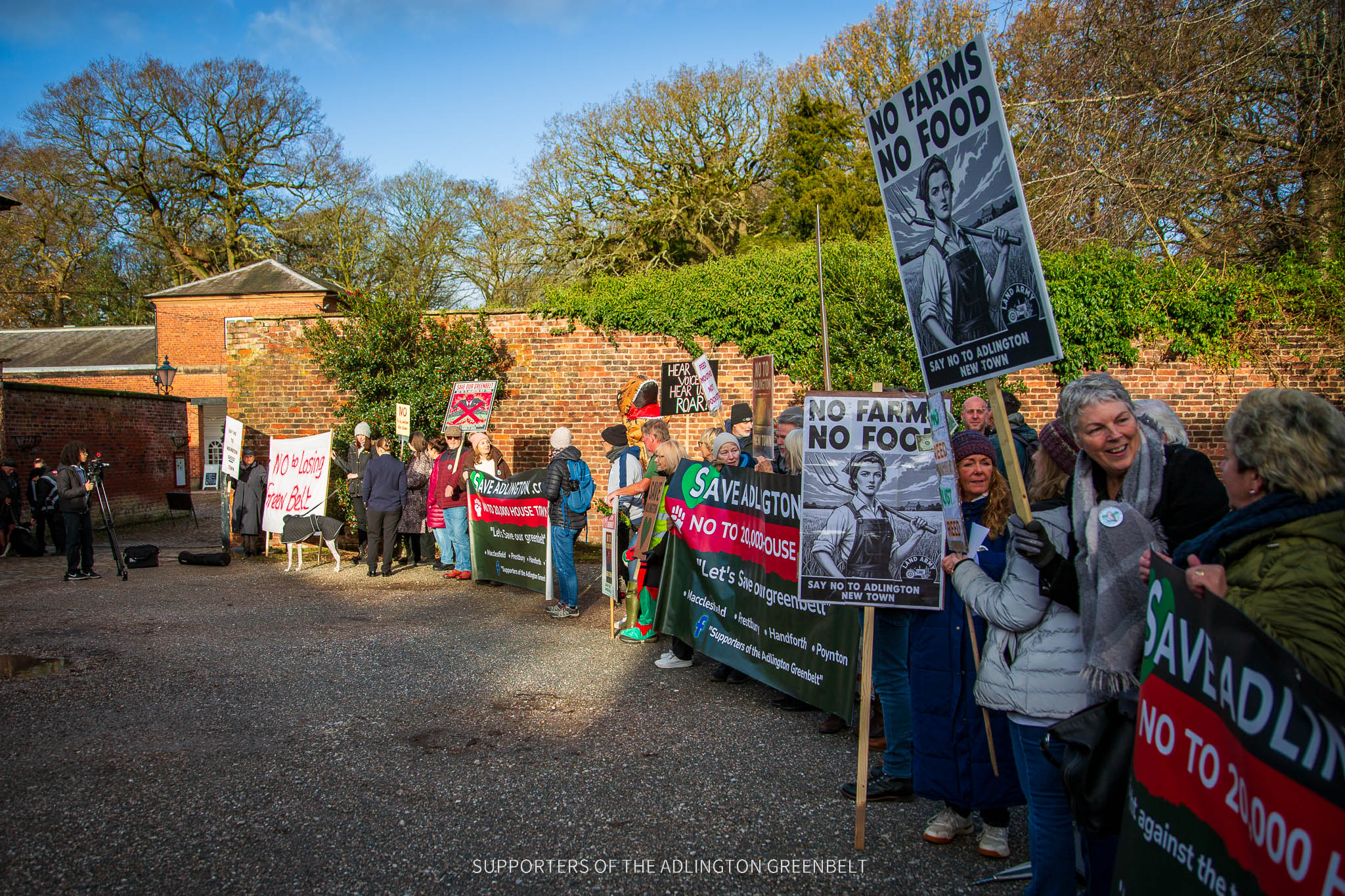 A protest took place today at Tatton Park as Cheshire East Council met to discuss strategic planning matters, including the contentious proposal for a new town development at Adlington. The meeting was moved to the larger Tenants’ Hall to accommodate heightened public interest and expected demonstrations.